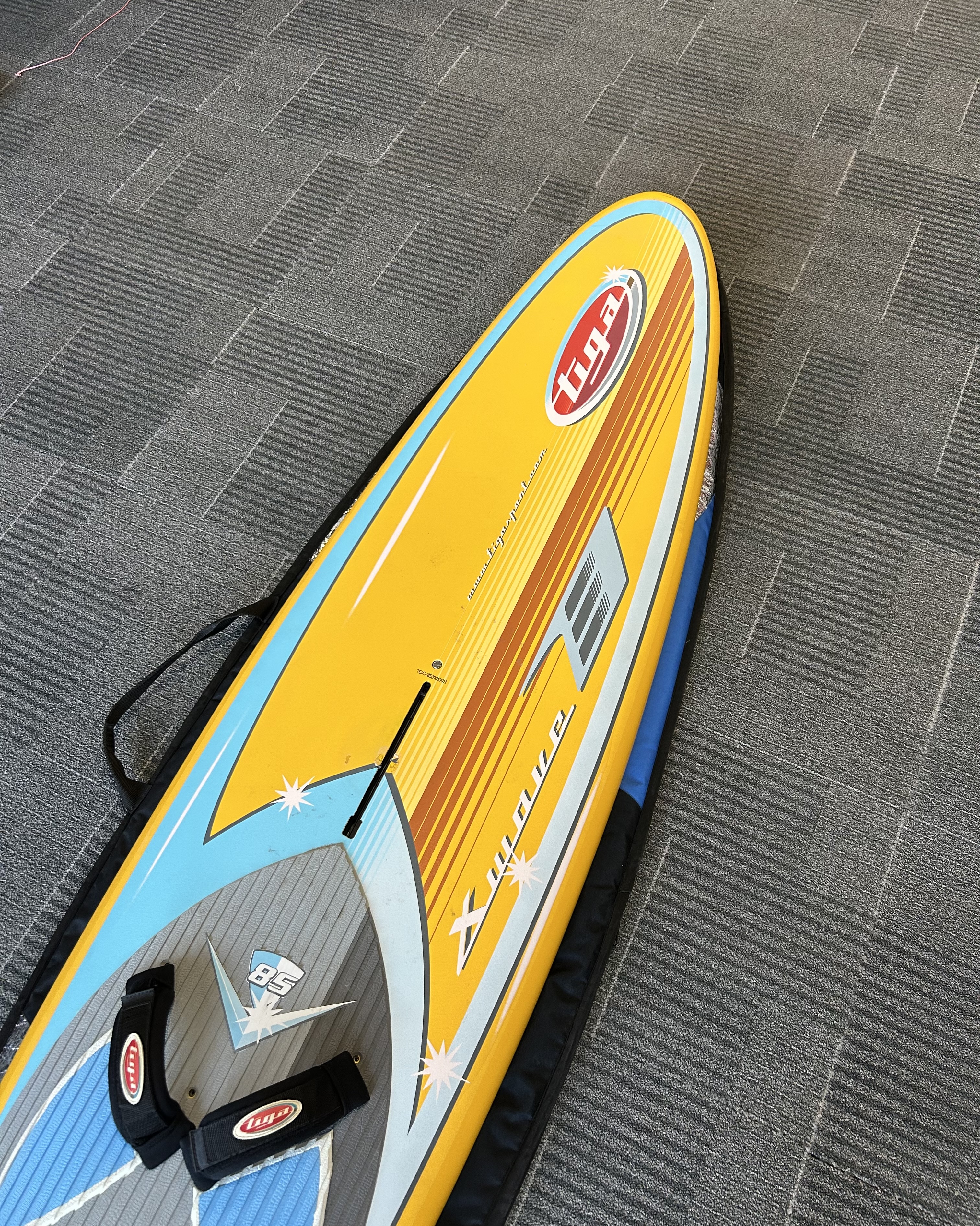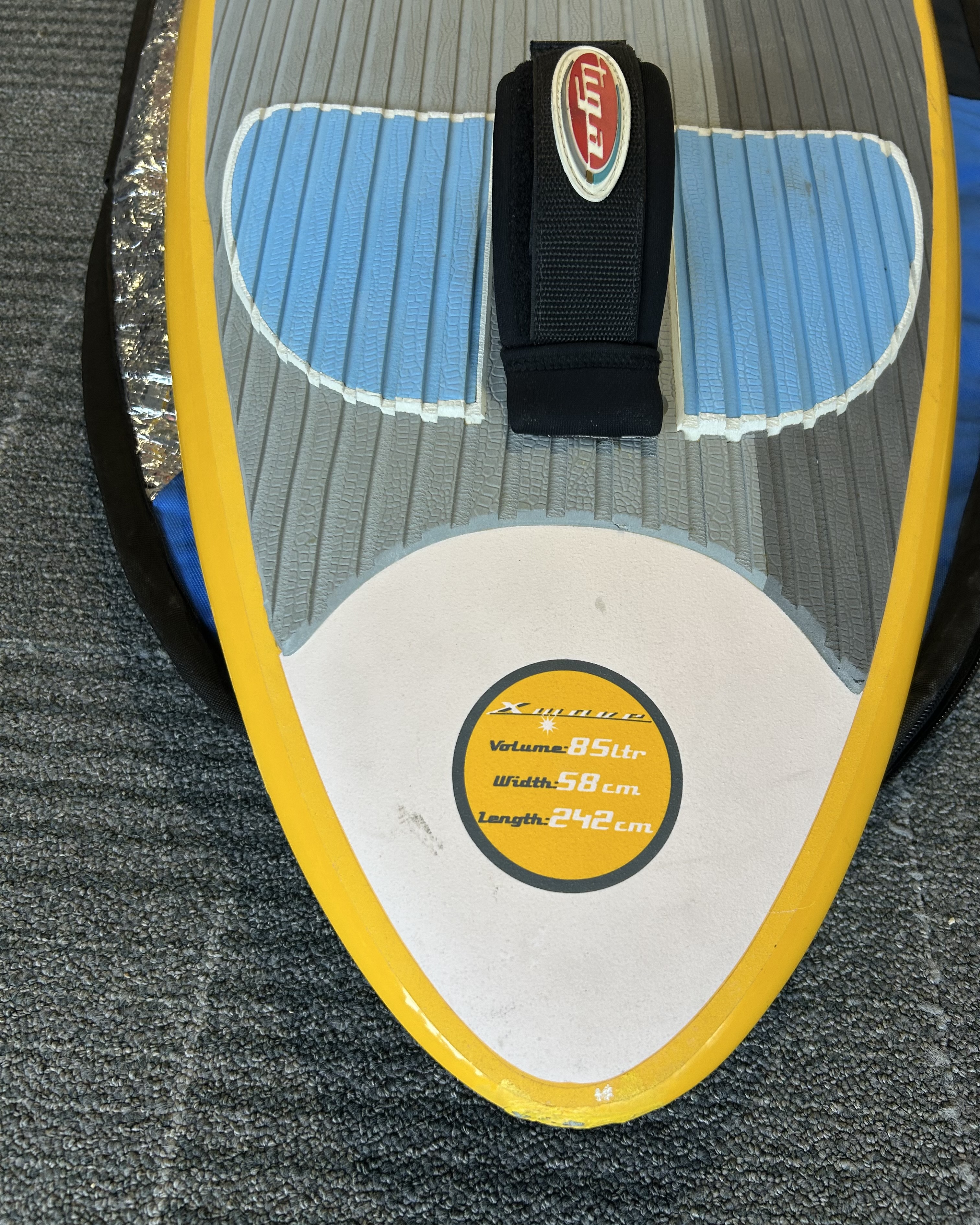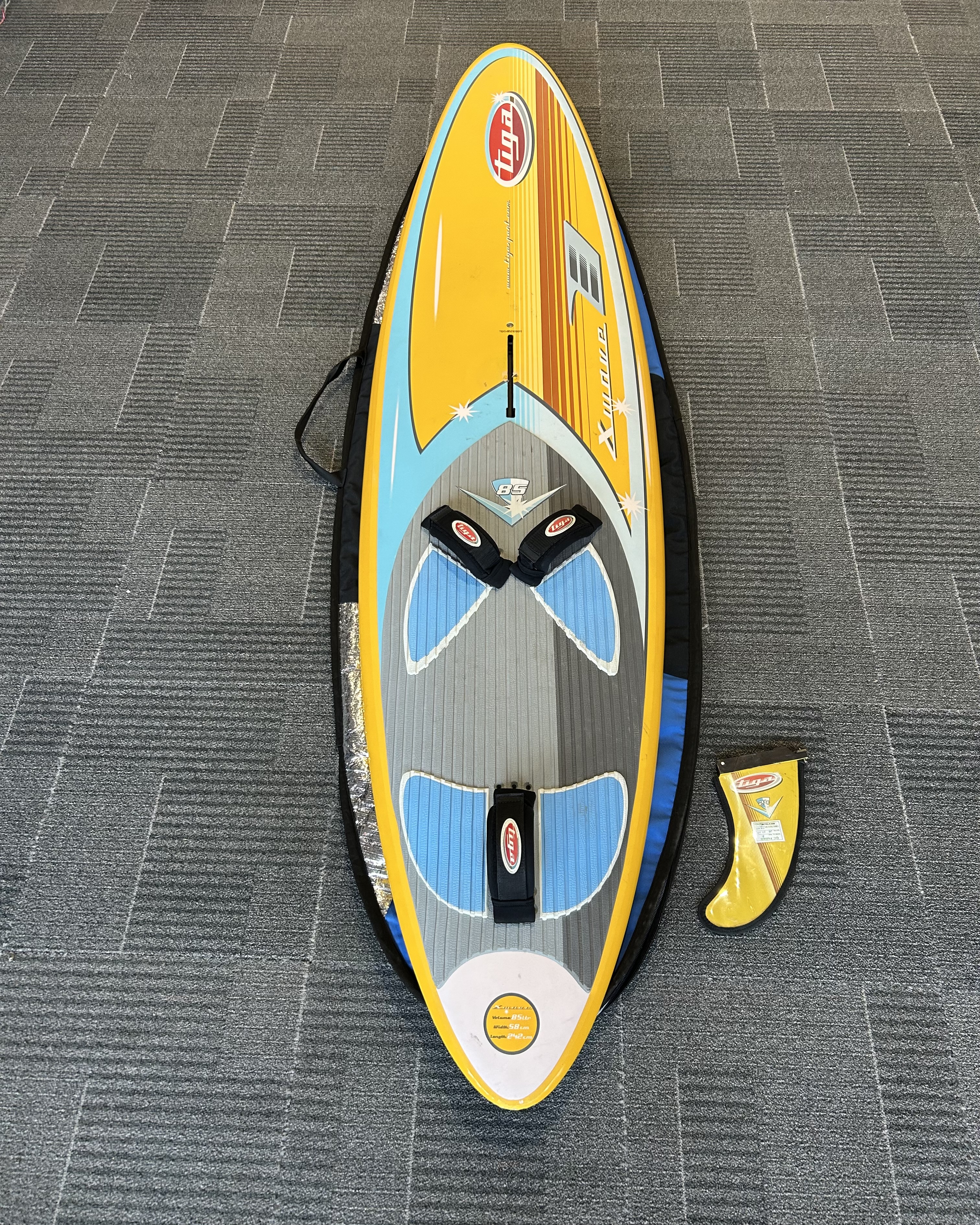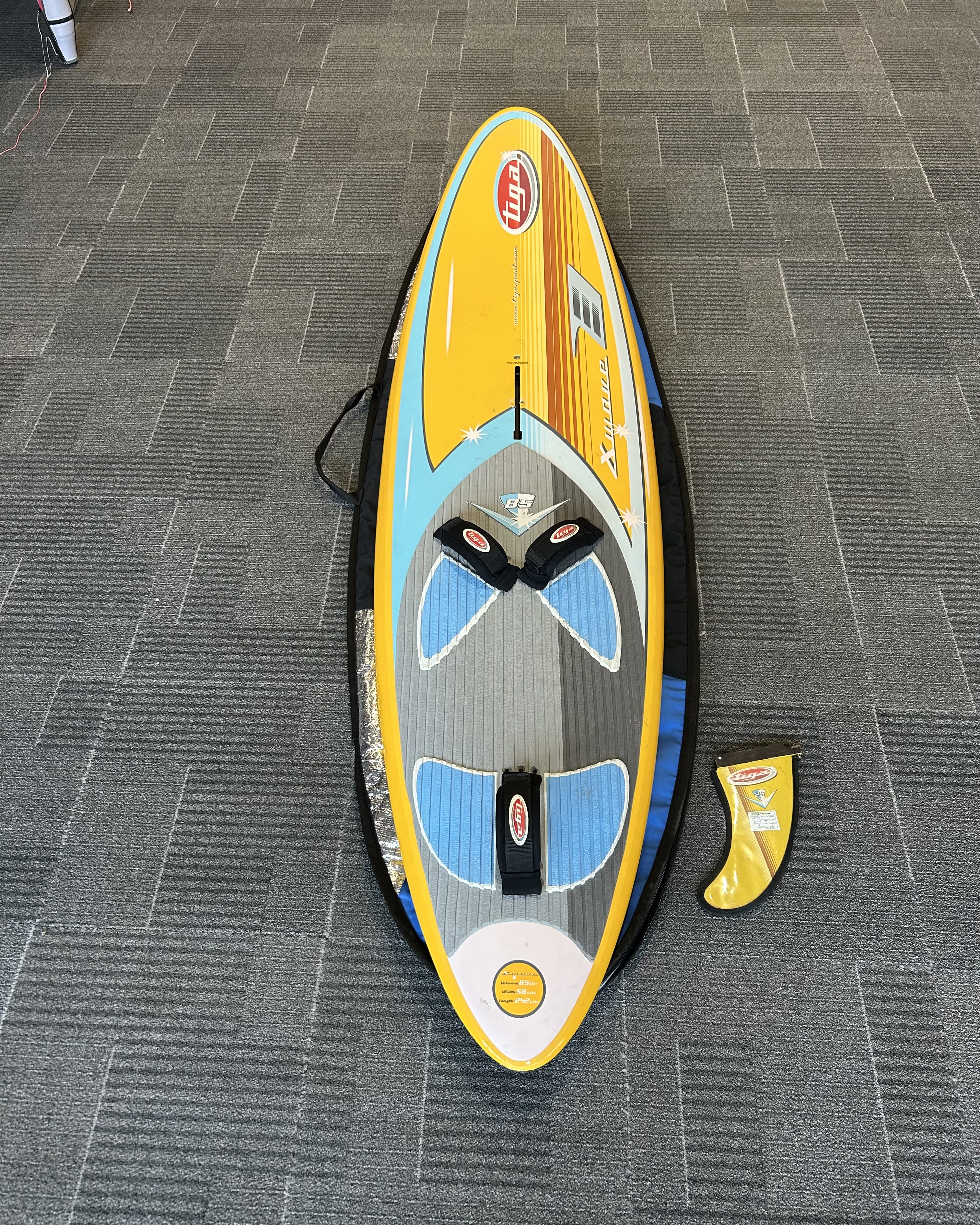 Szép állapotú 85 literes wave deszka. 242x58cm. szkeggel, zsákkal. több